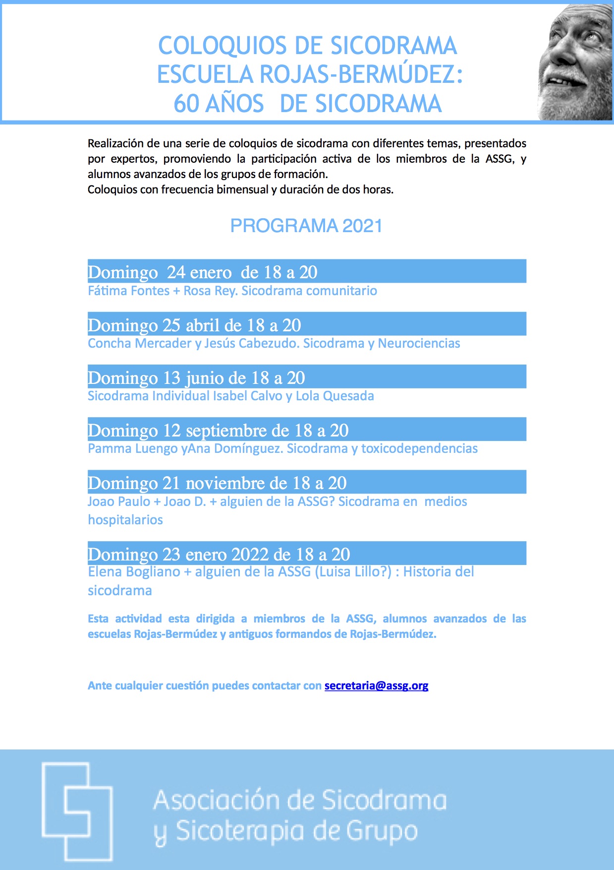 Como discípula directa de Rojas Bermúdez que soy, mi escuela sigue su modelo y Se llama. Escuela de Sicodrama, Sociodrama y Sicodanza: Concha Mercader. https://escuelaconchamercader.es